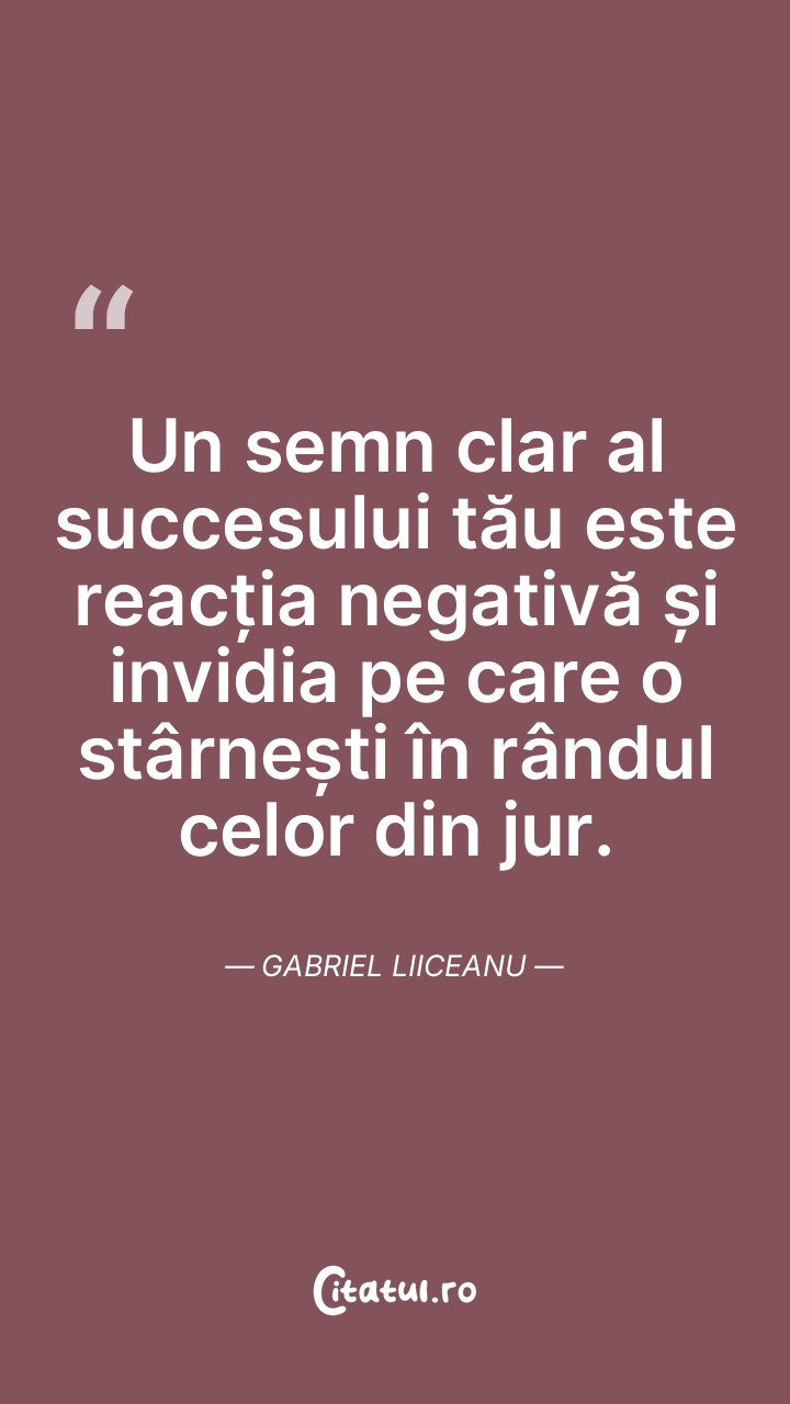 Un semn clar al succesului tău este reacția negativă și invidia pe care o stârnești în rândul celor din jur. Gabriel Liiceanu