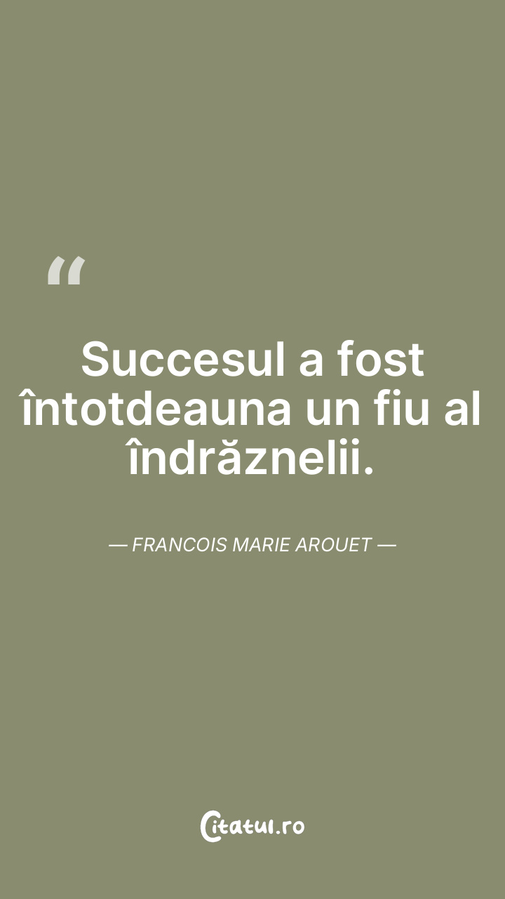 Succesul a fost întotdeauna un fiu al îndrăznelii. Francois Marie Arouet