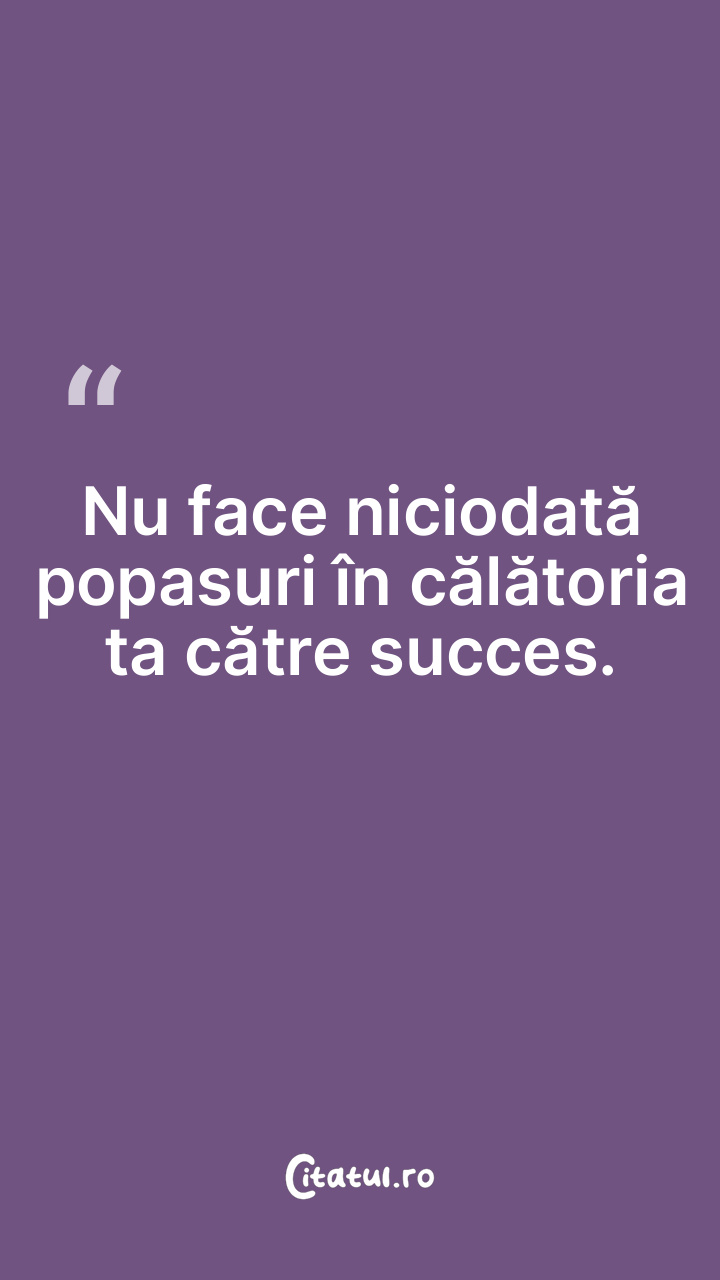 Nu face niciodată popasuri în călătoria ta către succes.