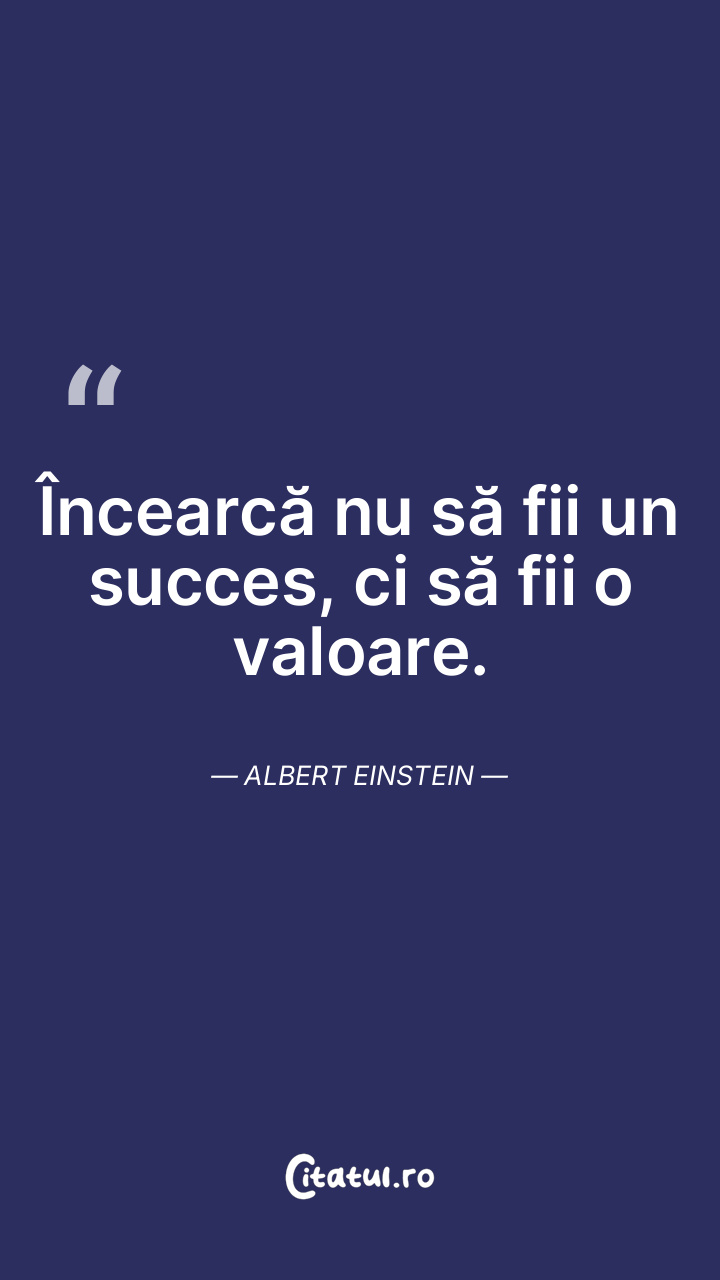 Încearcă nu să fii un succes, ci să fii o valoare. Albert Einstein