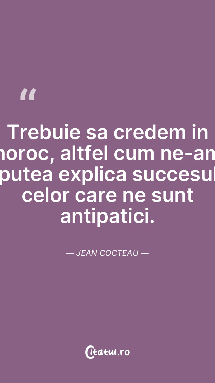 Trebuie sa credem in noroc, altfel cum ne-am putea explica succesul celor care ne sunt antipatici. Jean Cocteau