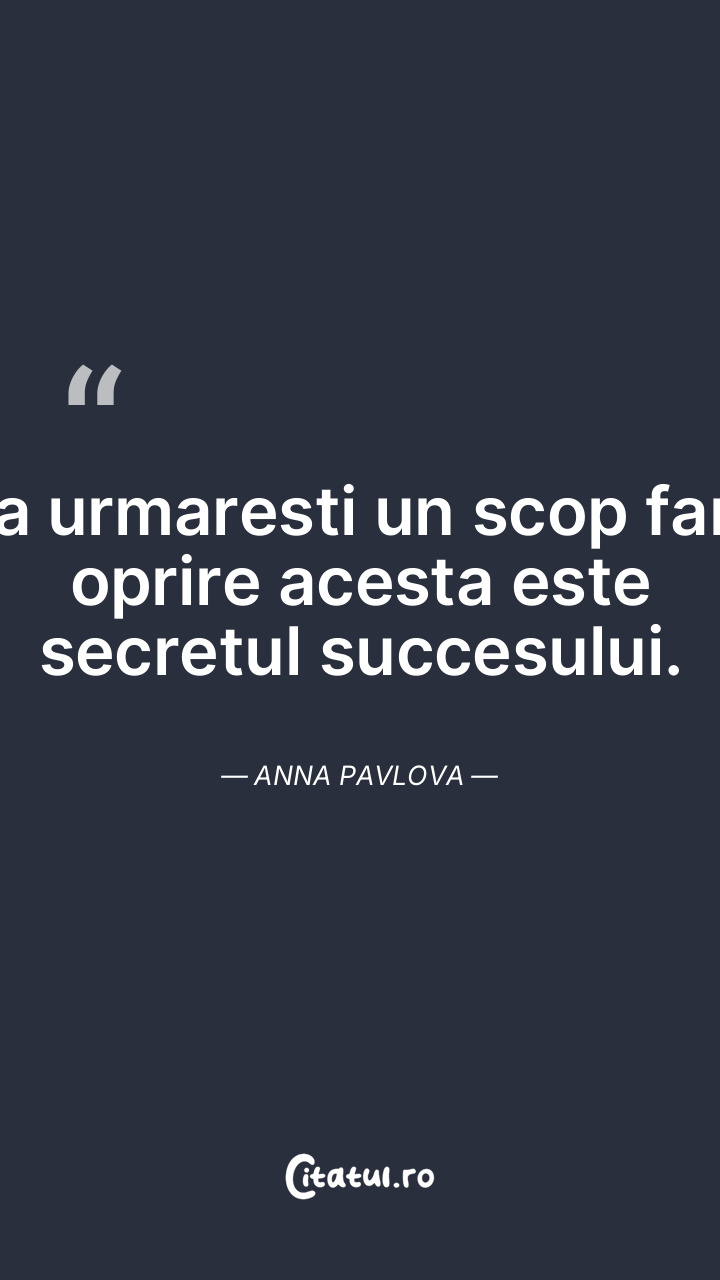 Sa urmaresti un scop fara oprire acesta este secretul succesului. Anna Pavlova