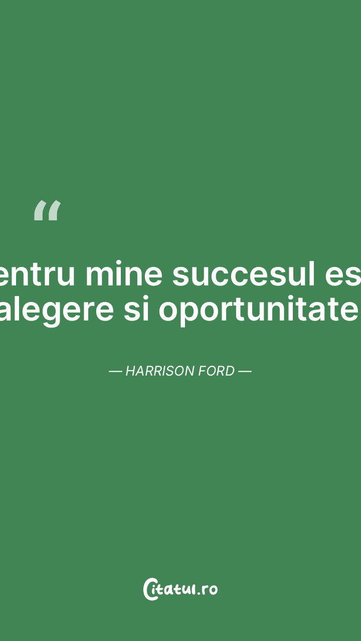 Pentru mine succesul este alegere si oportunitate. Harrison Ford