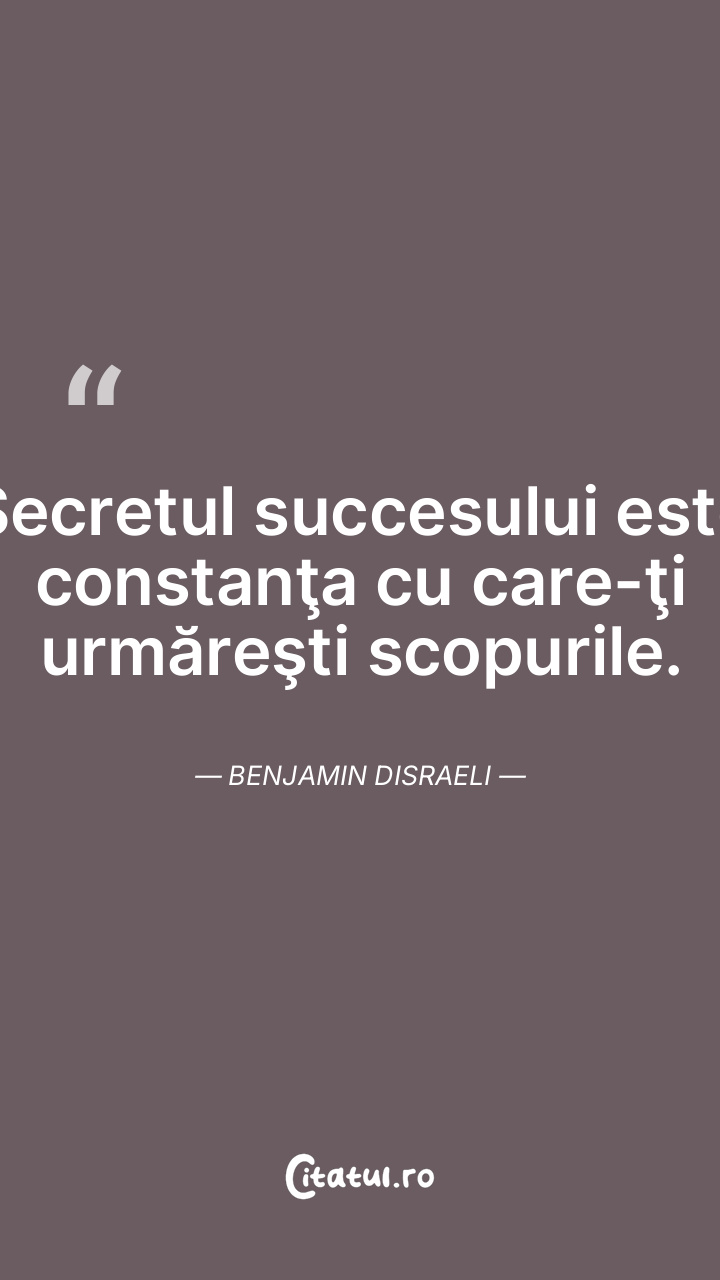 Secretul succesului este constanţa cu care-ţi urmăreşti scopurile. Benjamin Disraeli