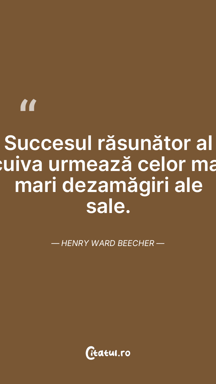 Succesul răsunător al cuiva urmează celor mai mari dezamăgiri ale sale. Henry Ward Beecher