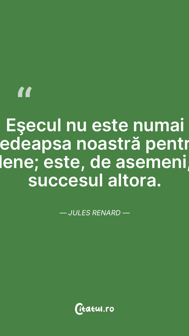 Eşecul nu este numai pedeapsa noastră pentru lene; este, de asemeni, succesul altora. Jules Renard