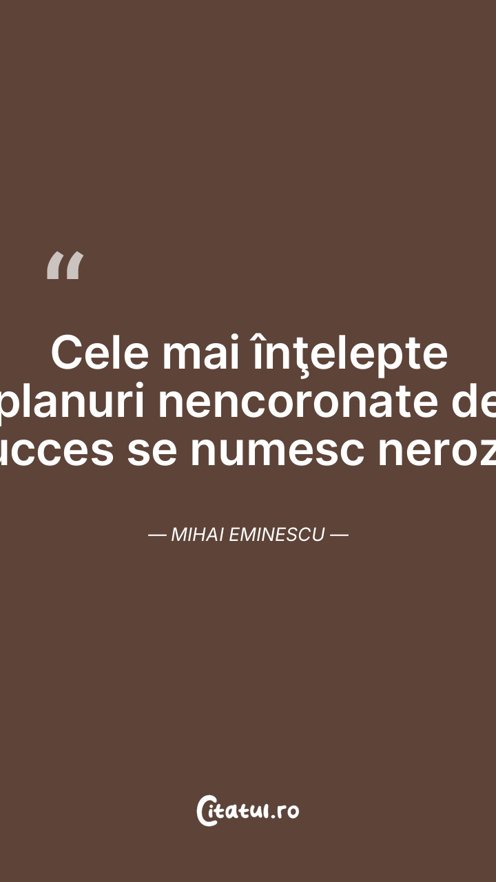 Cele mai înţelepte planuri nencoronate de succes se numesc nerozii. Mihai Eminescu