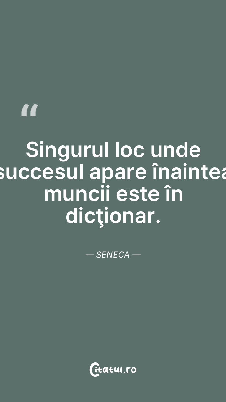 Singurul loc unde succesul apare înaintea muncii este în dicţionar. Seneca