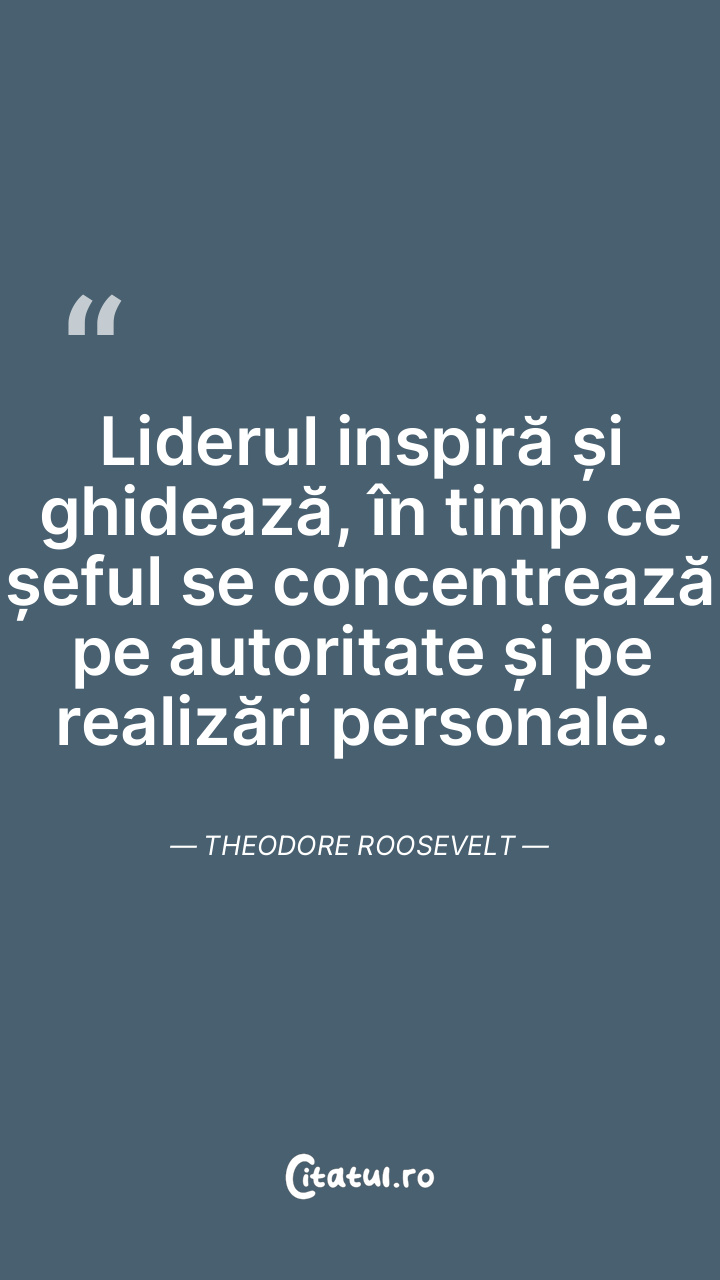 Liderul inspiră și ghidează, în timp ce șeful se concentrează pe autoritate și pe realizări personale. Theodore Roosevelt