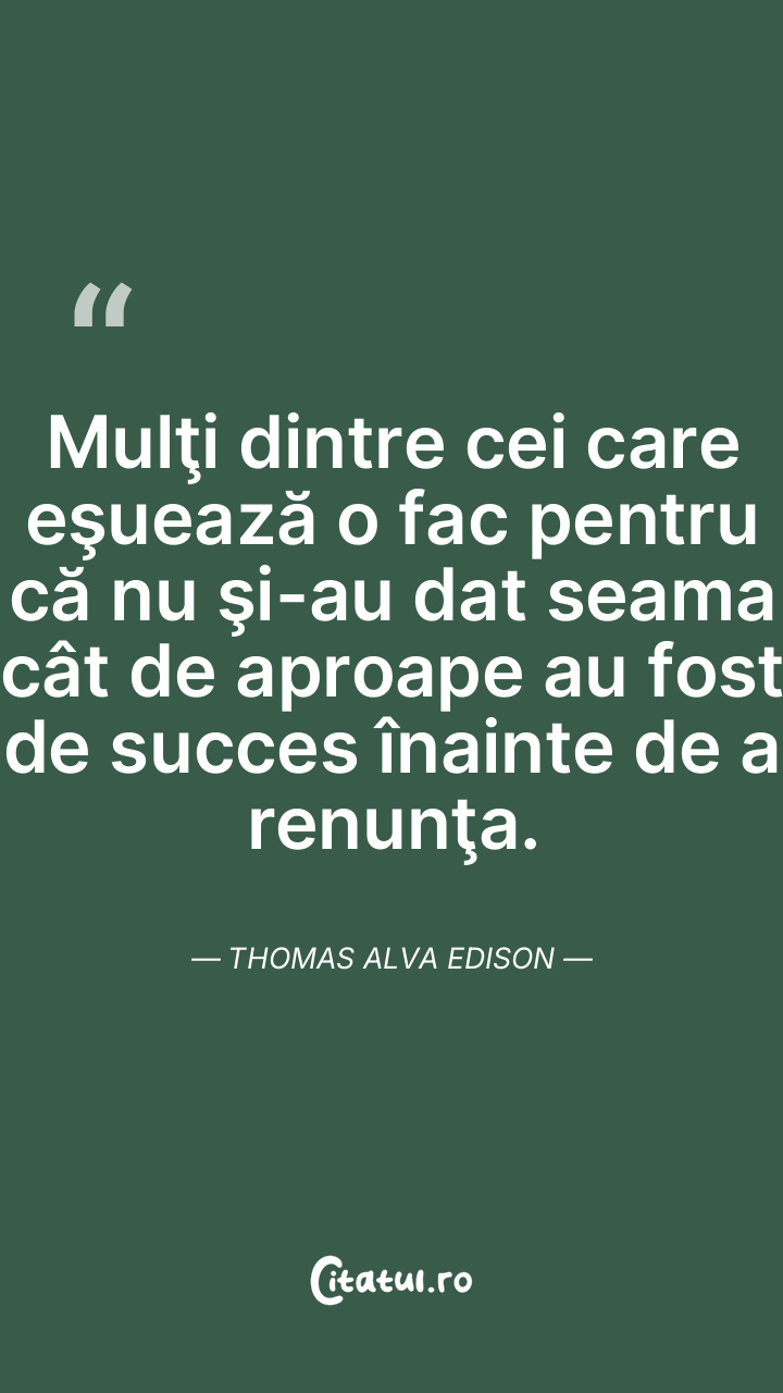 Mulţi dintre cei care eşuează o fac pentru că nu şi-au dat seama cât de aproape au fost de succes înainte de a renunţa. Thomas Alva Edison