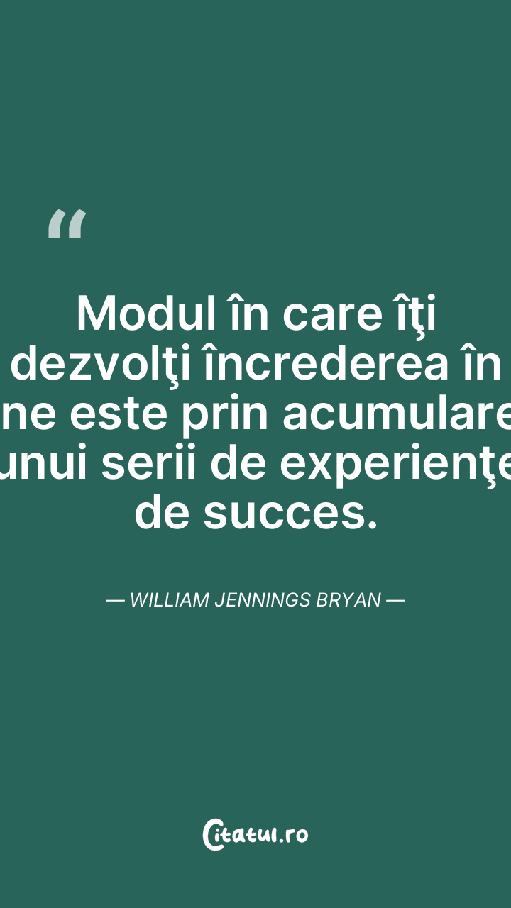 Modul în care îţi dezvolţi încrederea în sine este prin acumularea unui serii de experienţe de succes. William Jennings Bryan