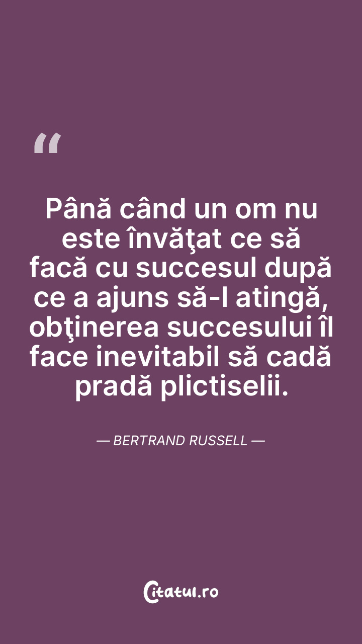 Până când un om nu este învăţat ce să facă cu succesul după ce a ajuns să-l atingă, obţinerea succesului îl face inevitabil să cadă pradă plictiselii. Bertrand Russell