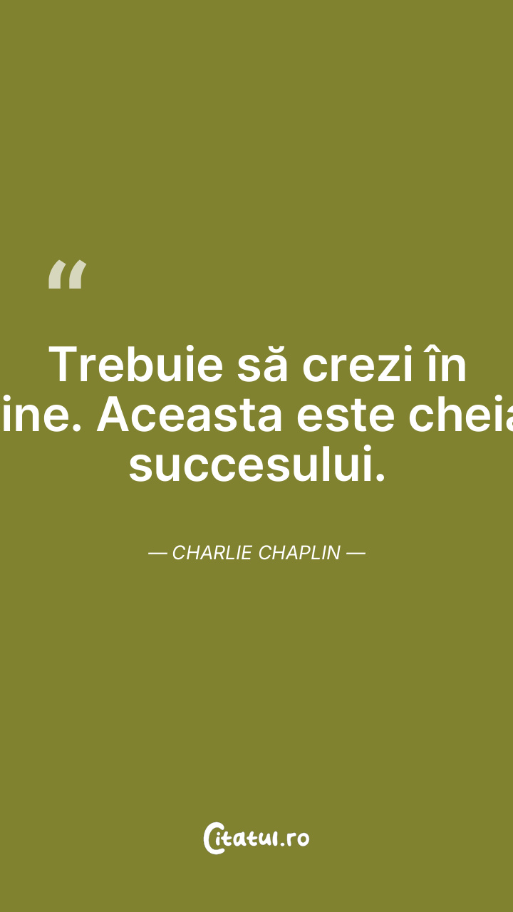 Trebuie să crezi în tine. Aceasta este cheia succesului. Charlie Chaplin