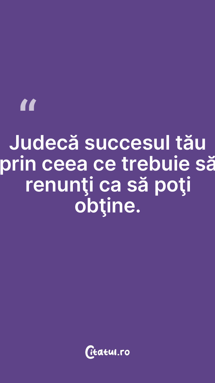 Judecă succesul tău prin ceea ce trebuie să renunţi ca să poţi obţine.