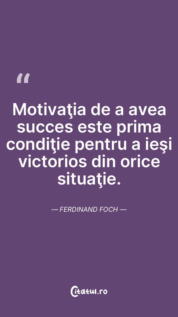 Motivaţia de a avea succes este prima condiţie pentru a ieşi victorios din orice situaţie. Ferdinand Foch