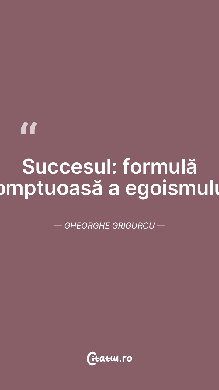 Succesul: formulă somptuoasă a egoismului. Gheorgh...