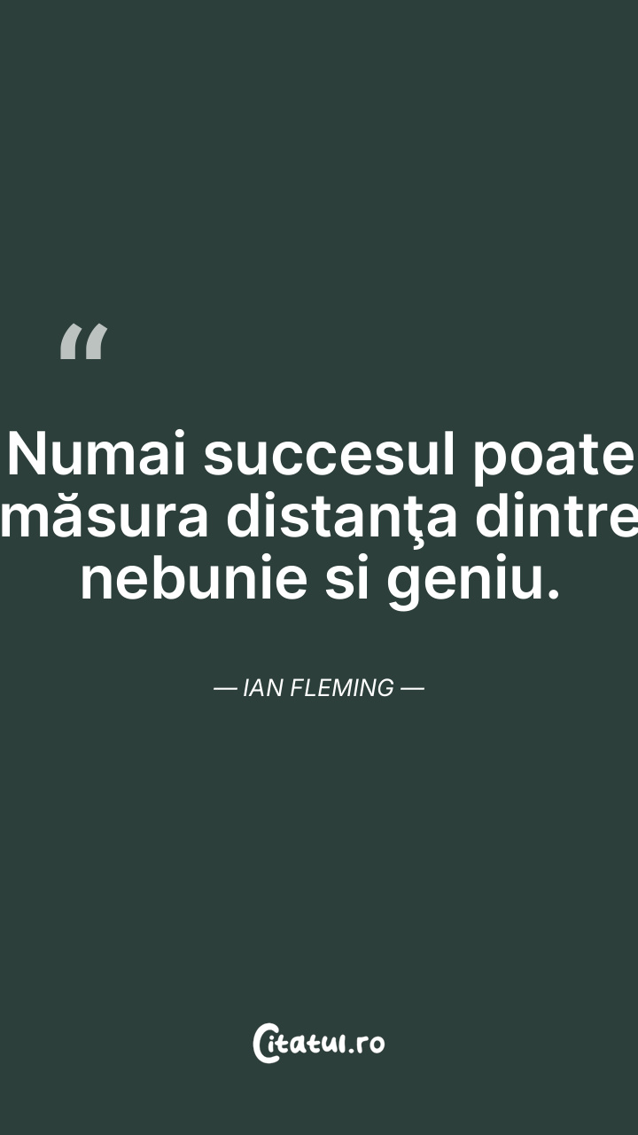 Numai succesul poate măsura distanţa dintre nebunie si geniu. Ian Fleming