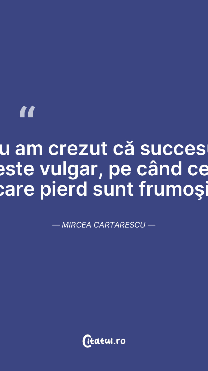Eu am crezut că succesul este vulgar, pe când cei care pierd sunt frumoşi. Mircea Cartarescu