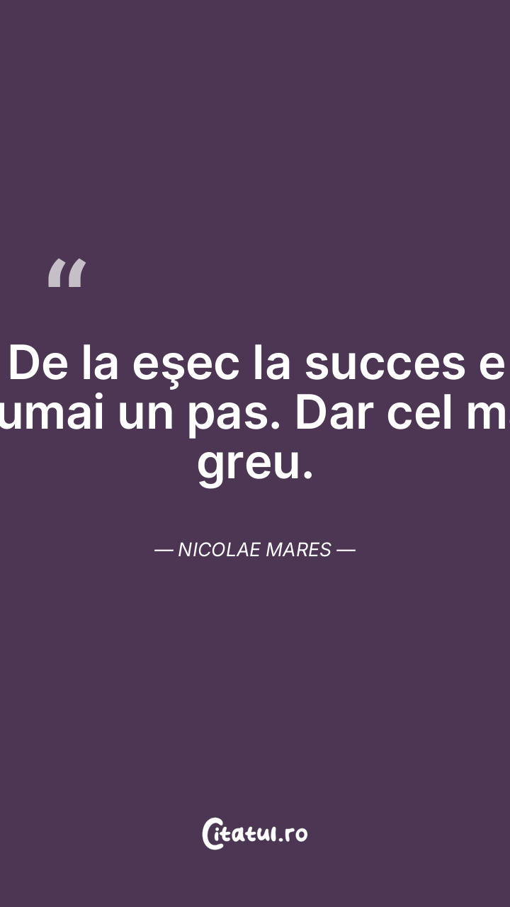 De la eşec la succes e numai un pas. Dar cel mai greu. Nicolae Mares
