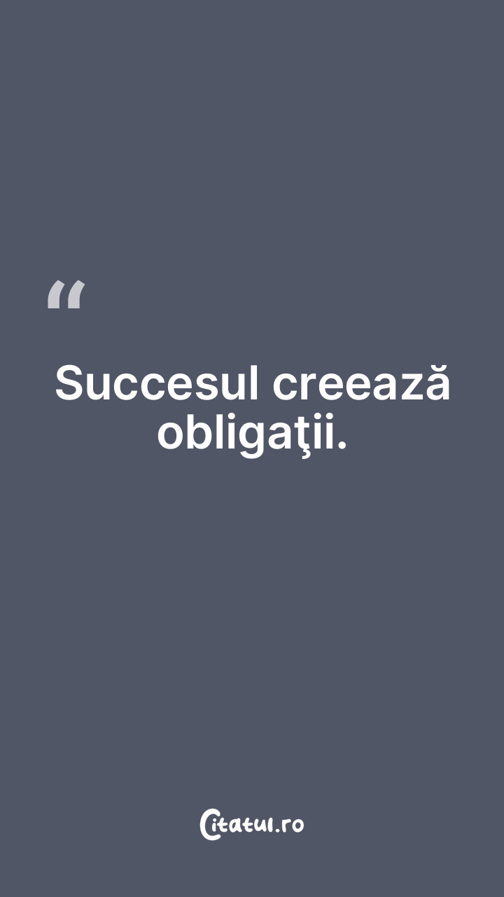 Succesul creează obligaţii. ... Categorie: citate motivationale Dificultate: Foarte ușor de citit! Votează: ★ ★ ★ ★ ★ (0/5 din 0) Distribuiți acest citat? Alegeți platforma preferată: Salvează citatul in telefon/pc Succesul creează obligaţii. Copiază Favorite Eroare