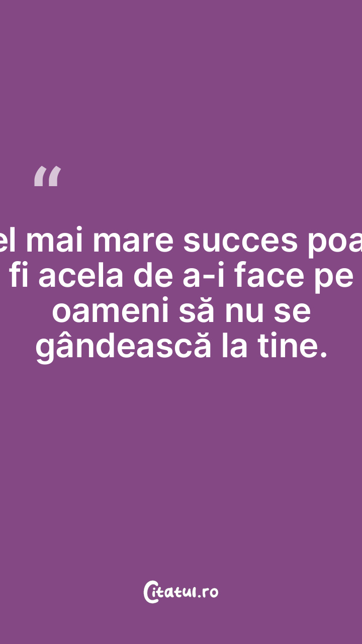 Cel mai mare succes poate fi acela de a-i face pe oameni să nu se gândească la tine.
