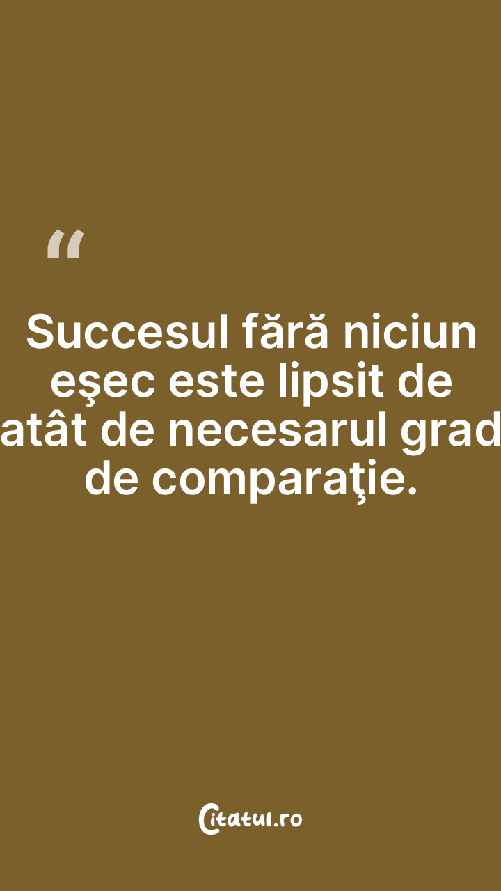 Succesul fără niciun eşec este lipsit de atât de necesarul grad de comparaţie.