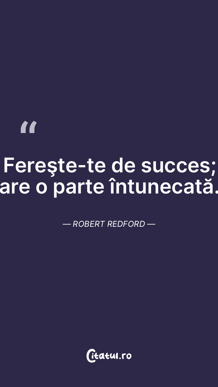 Fereşte-te de succes; are o parte întunecată. Robert Redford