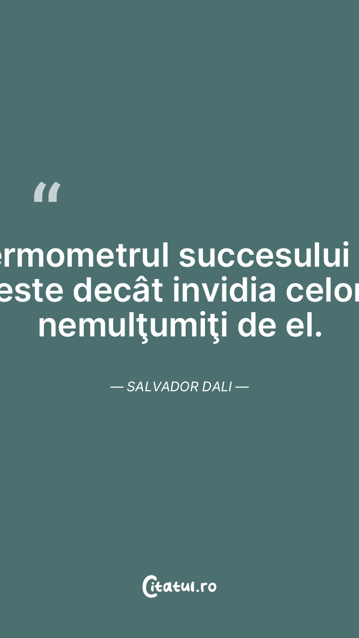 Termometrul succesului nu este decât invidia celor nemulţumiţi de el. Salvador Dali