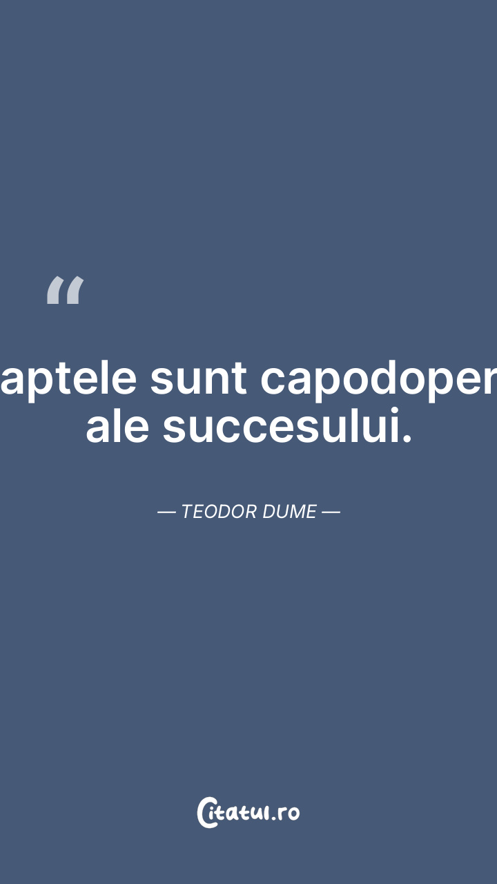 Faptele sunt capodopere ale succesului. Teodor Dum...