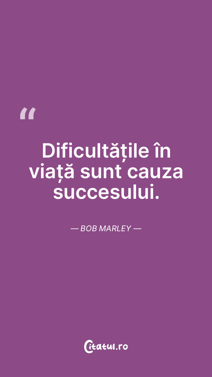Dificultățile în viață sunt cauza succesului. Bob Marley