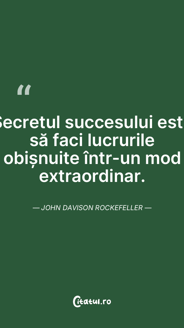 Secretul succesului este să faci lucrurile obișnuite într-un mod extraordinar. John Davison Rockefeller