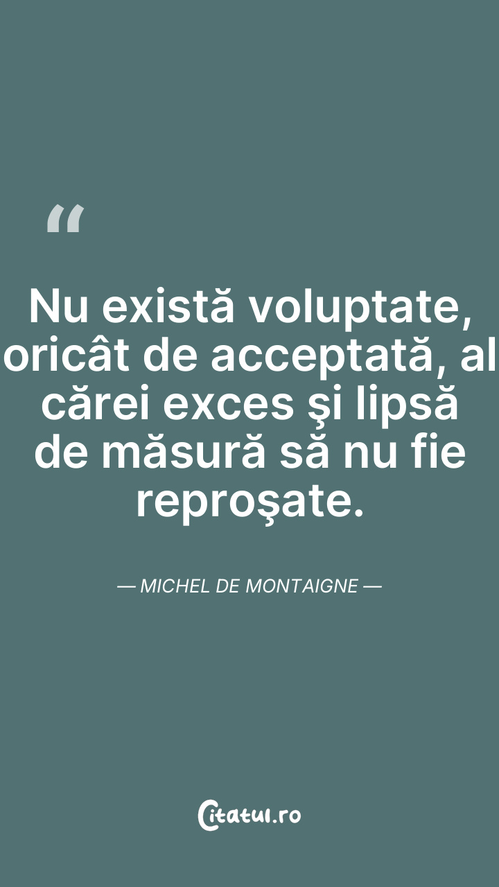 Nu există voluptate, oricât de acceptată, al cărei exces şi lipsă de măsură să nu fie reproşate. Michel de Montaigne