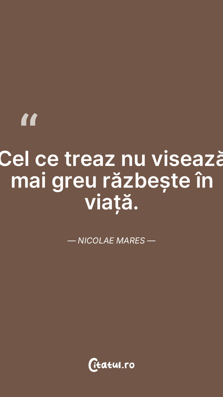 Cel ce treaz nu visează mai greu răzbește în viață. Nicolae Mares