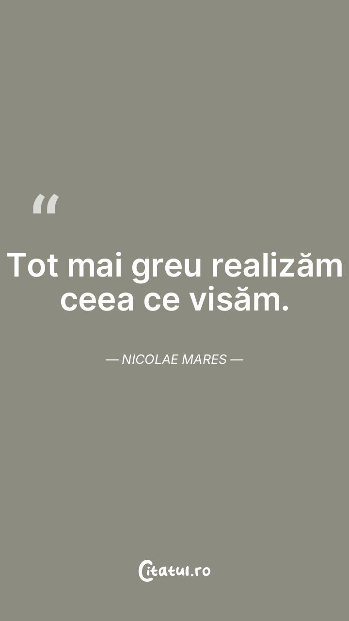 Tot mai greu realizăm ceea ce visăm. Nicolae Mares...
