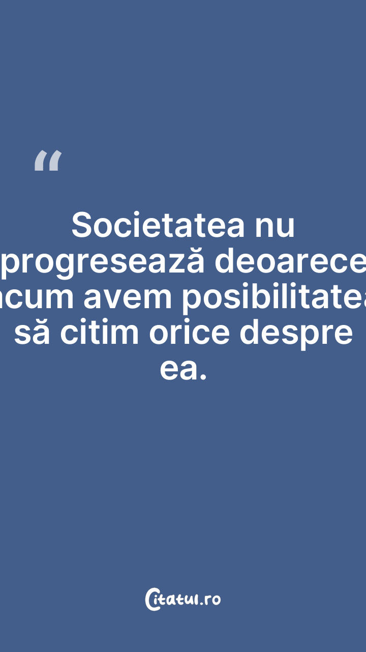 Societatea nu progresează deoarece acum avem posibilitatea să citim orice despre ea.