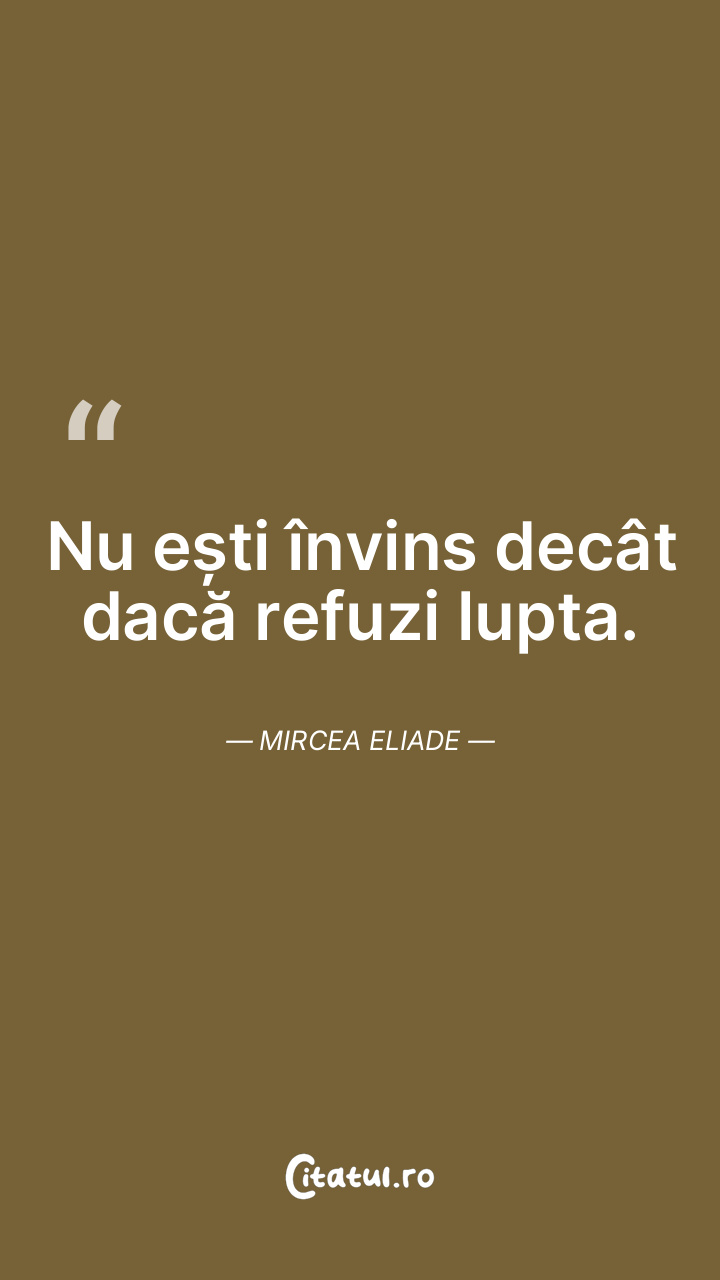 Nu ești învins decât dacă refuzi lupta. Mircea Eliade