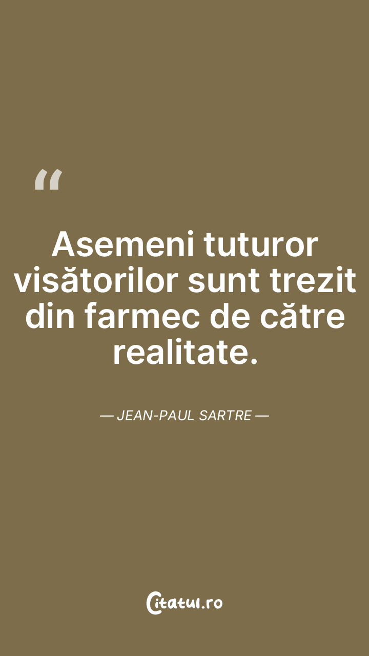 Asemeni tuturor visătorilor sunt trezit din farmec de către realitate. Jean-Paul Sartre