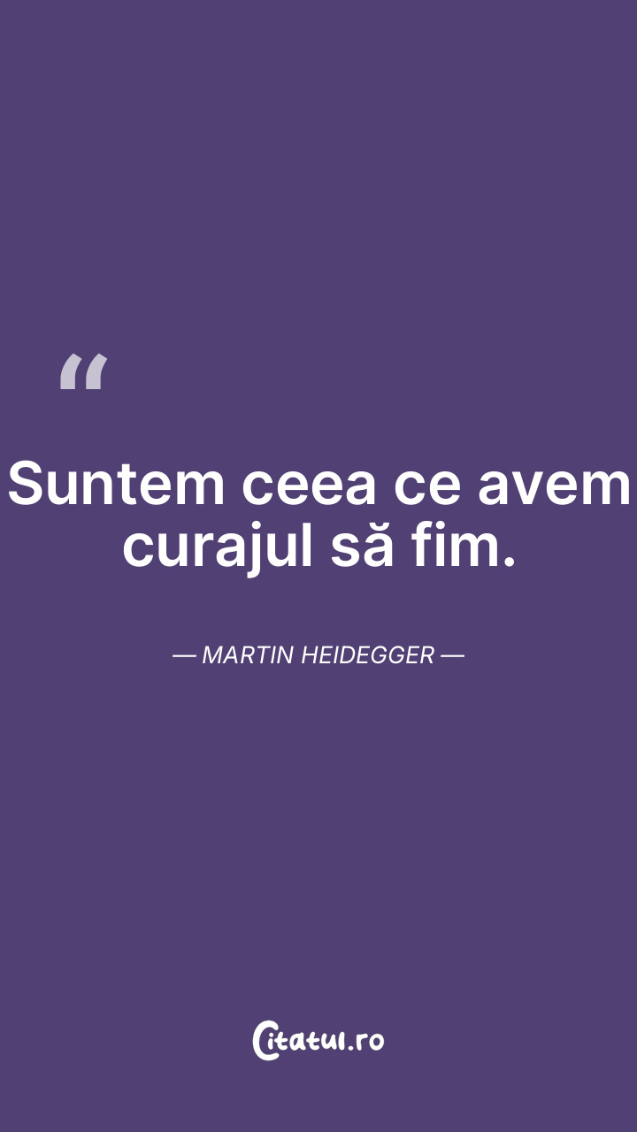 Suntem ceea ce avem curajul să fim. Martin Heidegg...