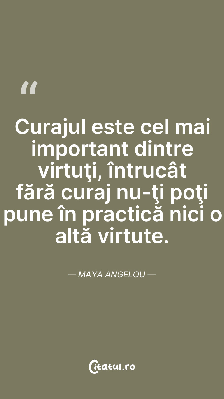 Curajul este cel mai important dintre virtuţi, întrucât fără curaj nu-ţi poţi pune în practică nici o altă virtute. Maya Angelou