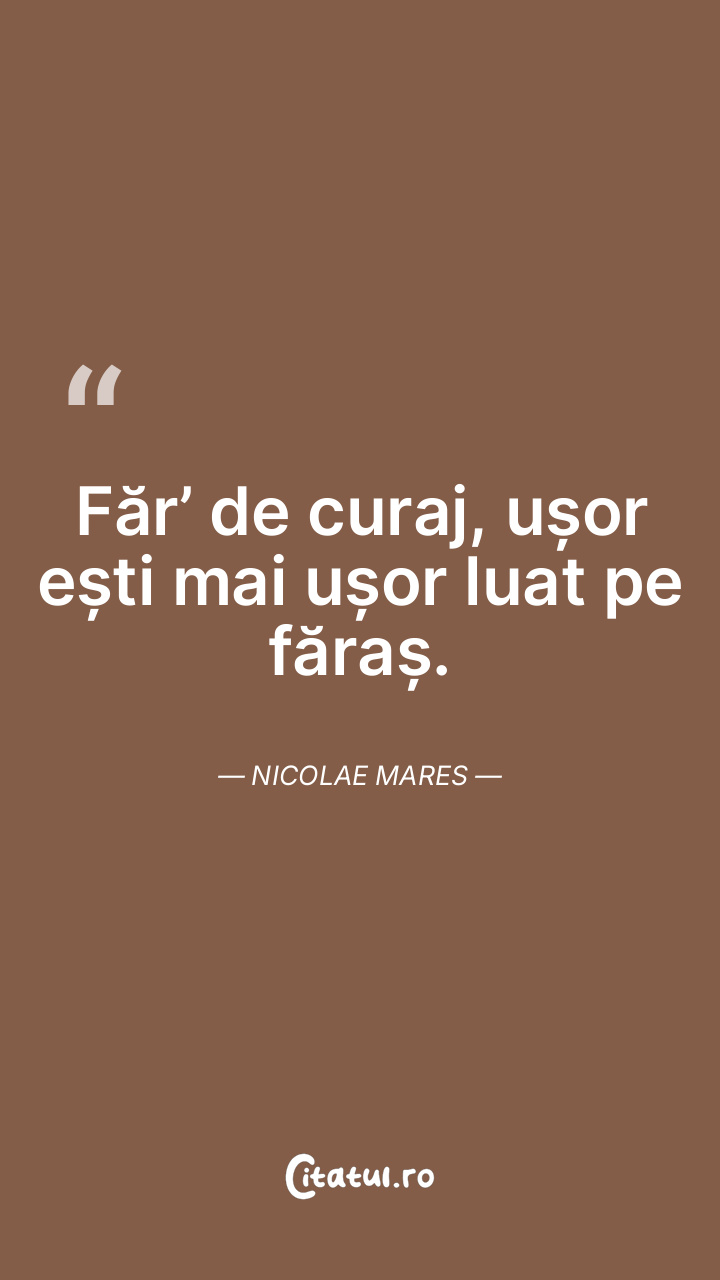 Făr’ de curaj, ușor ești mai ușor luat pe făraș. Nicolae Mares