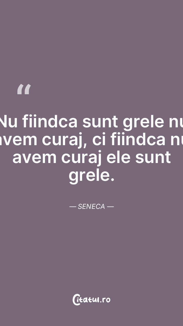 Nu fiindca sunt grele nu avem curaj, ci fiindca nu avem curaj ele sunt grele. Seneca