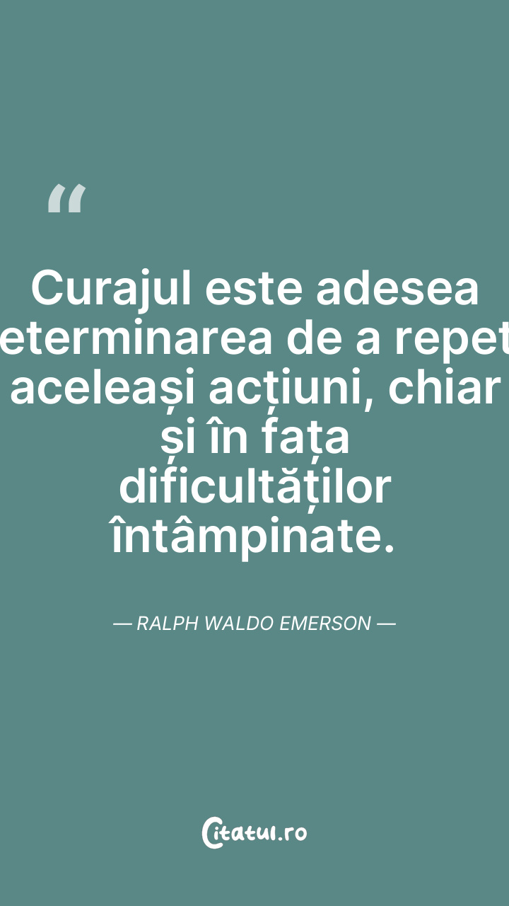Curajul este adesea determinarea de a repeta aceleași acțiuni, chiar și în fața dificultăților întâmpinate. Ralph Waldo Emerson