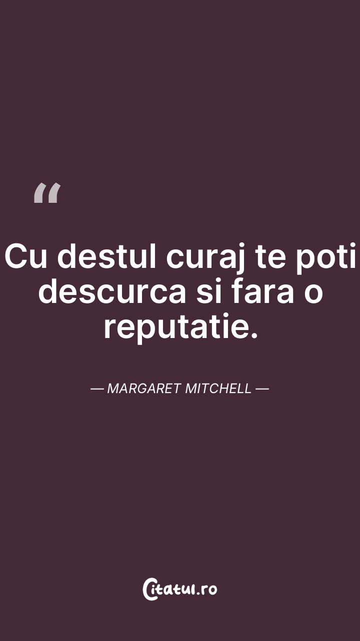 Cu destul curaj te poti descurca si fara o reputatie. Margaret Mitchell