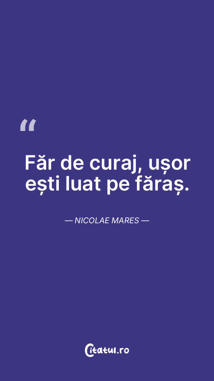 Făr de curaj, ușor ești luat pe făraș. Nicolae Mares