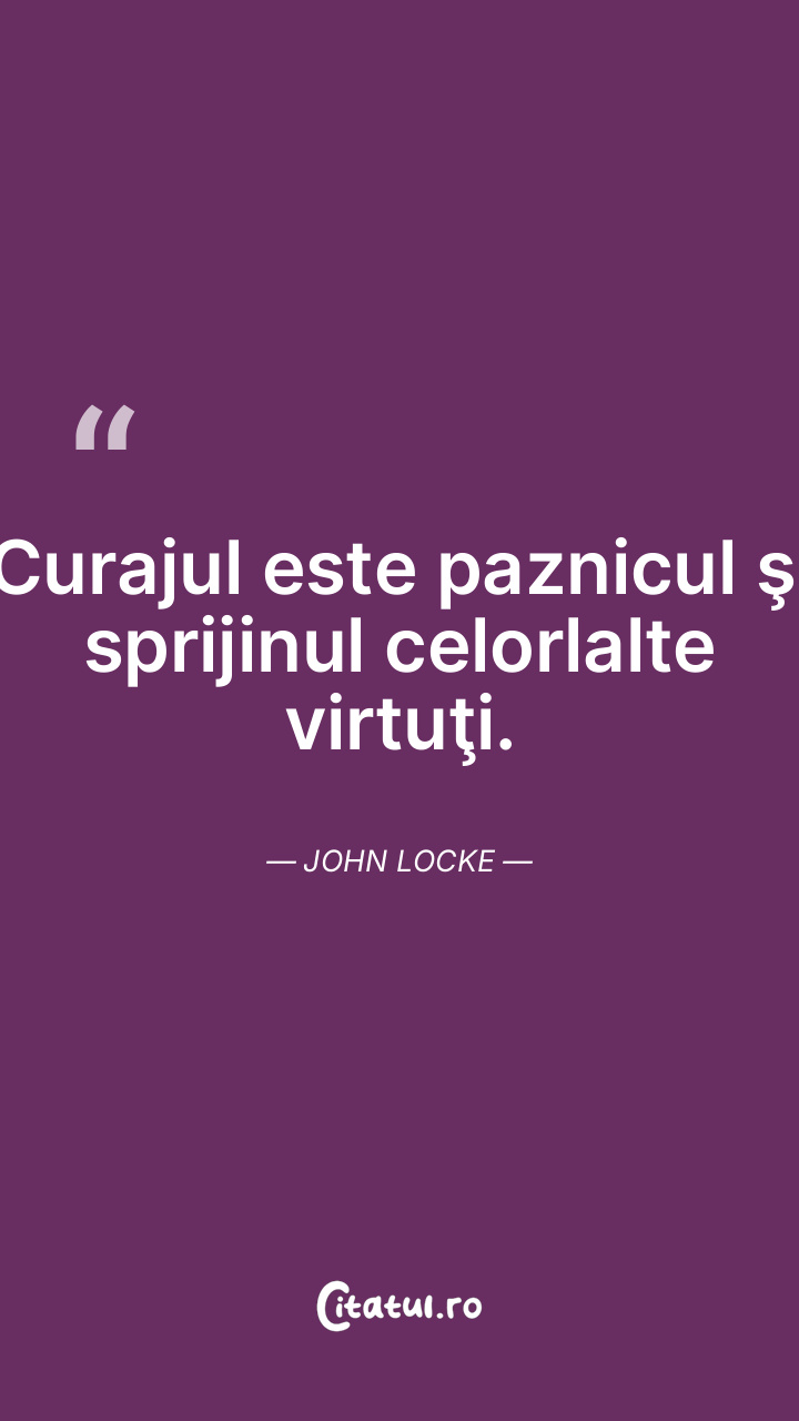 Curajul este paznicul şi sprijinul celorlalte virtuţi. John Locke