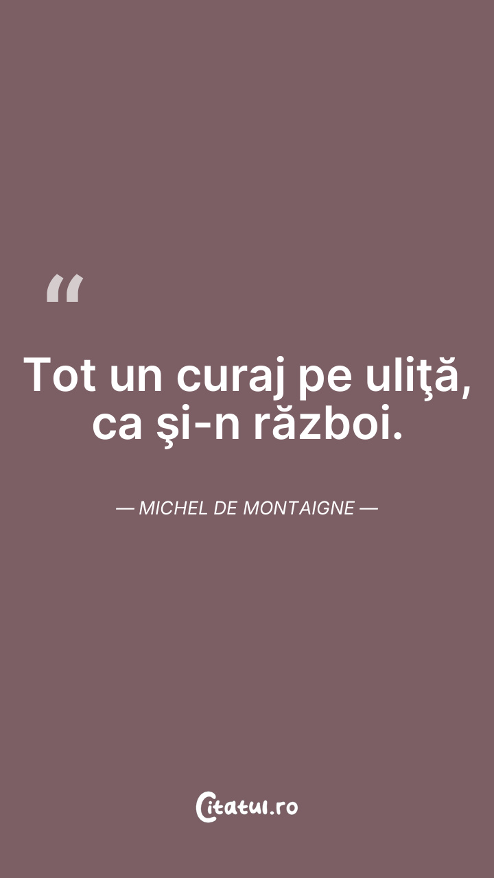Tot un curaj pe uliţă, ca şi-n război. Michel de Montaigne