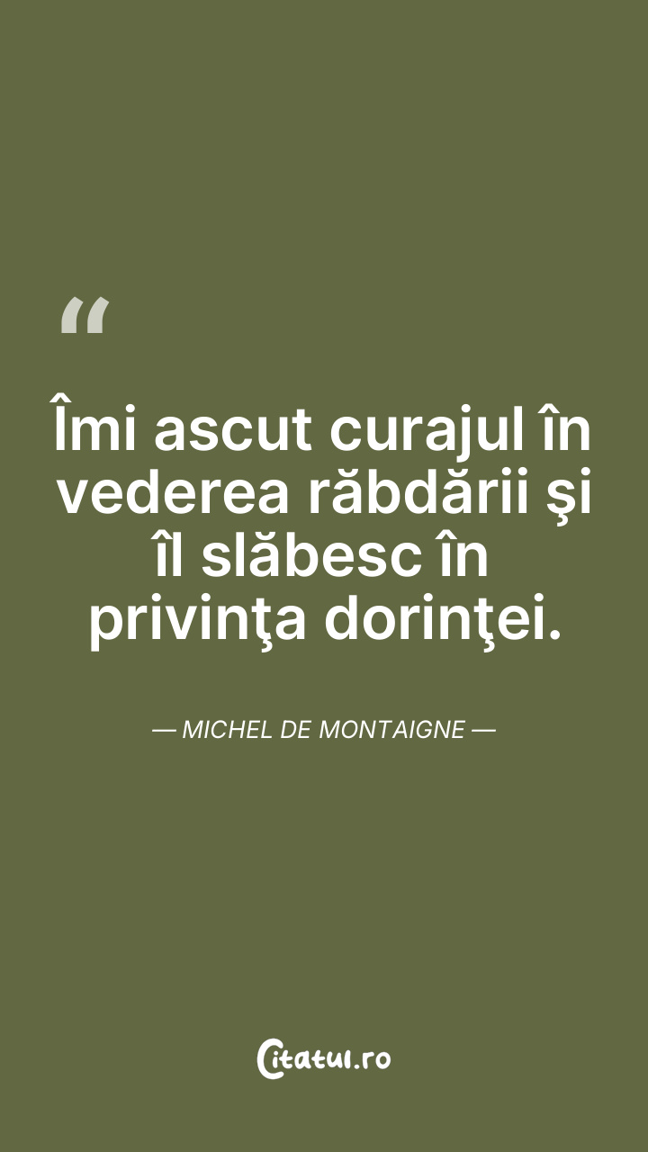 Îmi ascut curajul în vederea răbdării şi îl slăbesc în privinţa dorinţei. Michel de Montaigne