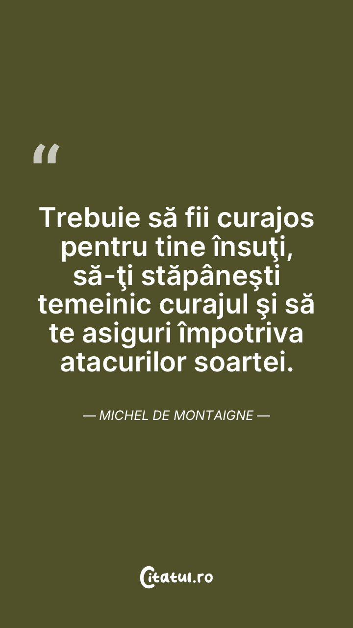 Trebuie să fii curajos pentru tine însuţi, să-ţi stăpâneşti temeinic curajul şi să te asiguri împotriva atacurilor soartei. Michel de Montaigne