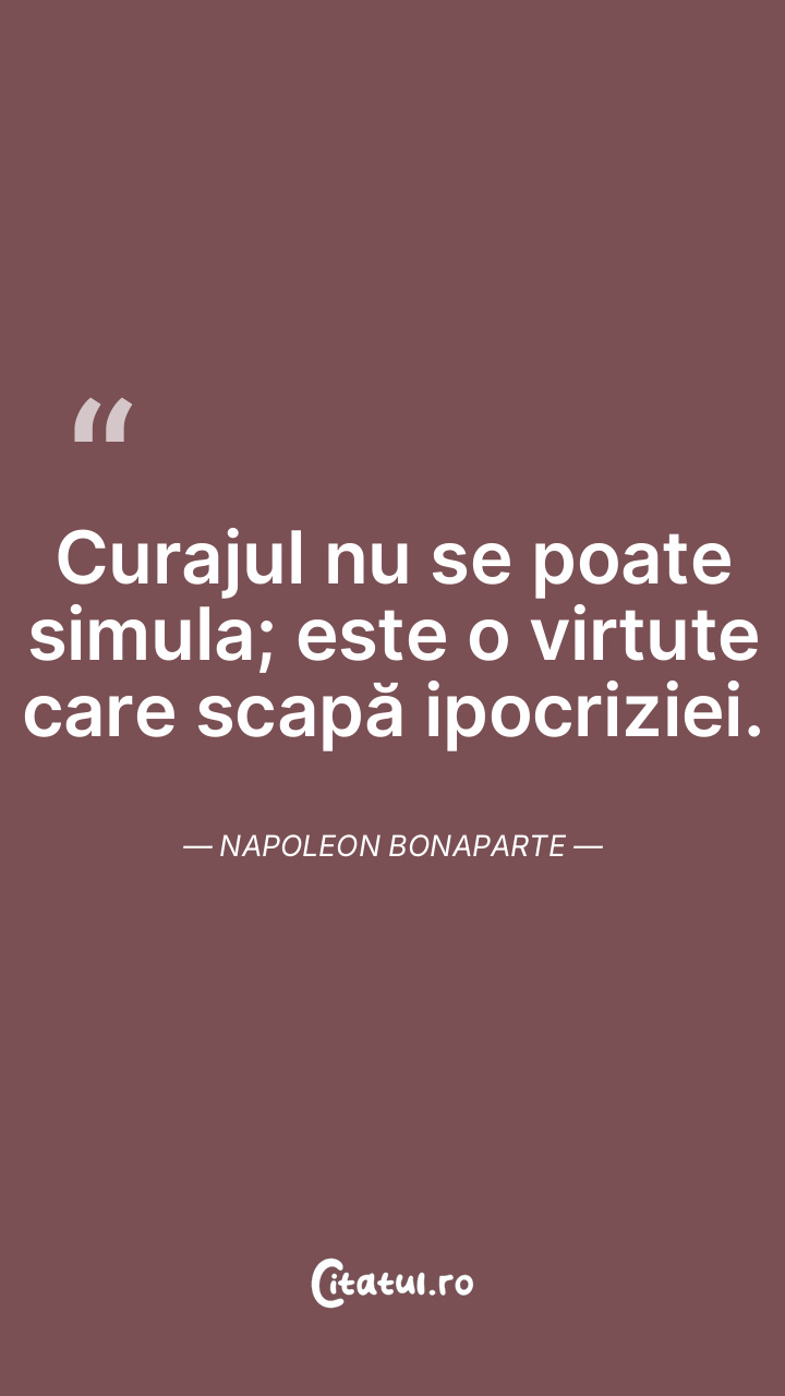 Curajul nu se poate simula; este o virtute care scapă ipocriziei. Napoleon Bonaparte