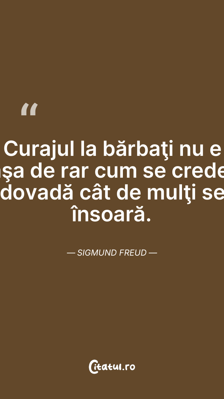 Curajul la bărbaţi nu e aşa de rar cum se crede, dovadă cât de mulţi se însoară. Sigmund Freud